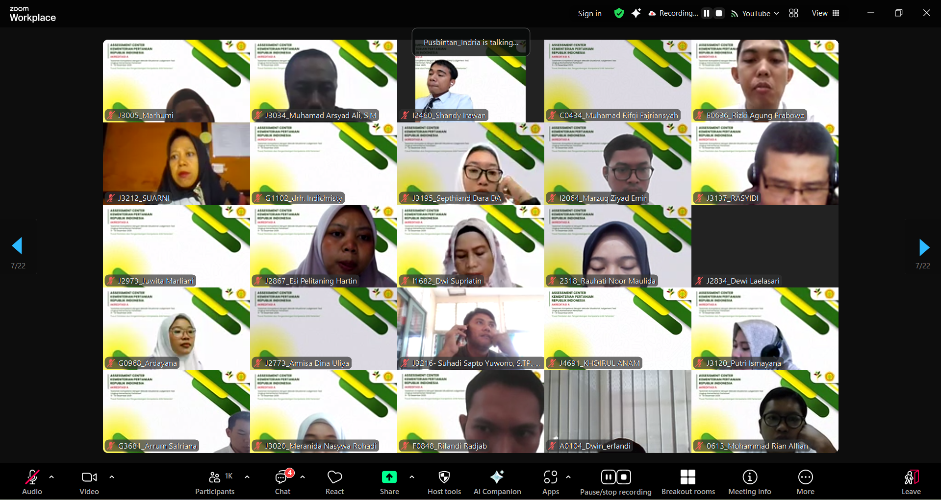 Bogor (15/12) – Sebagai langkah untuk mewujudkan ASN yang berkompetensi unggul, Kementerian Pertanian (Kementan) telah melaksanakan Asesmen menggunakan metode Situational Judgement Test (SJT) yang diselenggarakan pada tanggal 9 s.d 10 Desember 2025 secara daring melalui Zoom Meeting. Kegiatan ini diikuti oleh 4855 pegawai dari seluruh Eselon 1 yang berada di naungan Kementerian Pertanian.